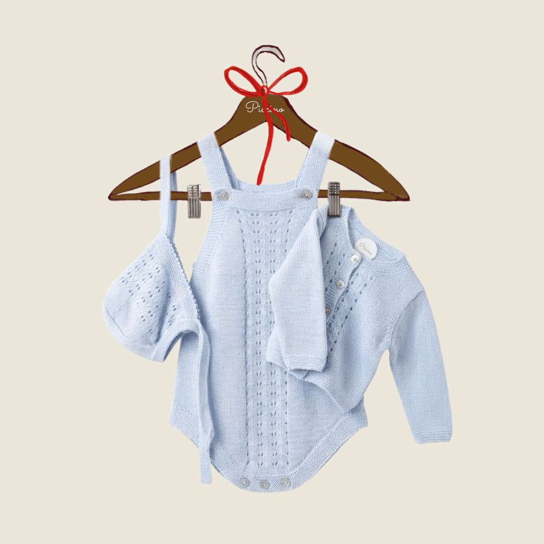 Set 3 pezzi: cardigan, cappellino e salopette